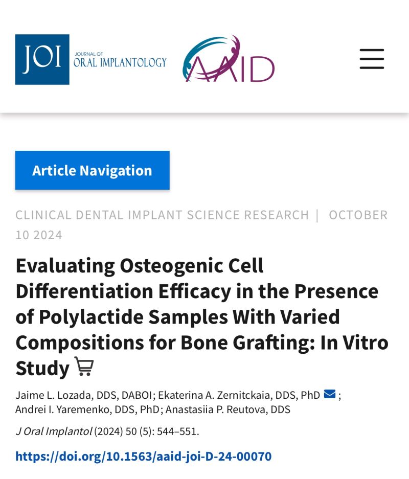 Научные обновления от команды ZERTAN! Мы рады поделиться, что наша новая статья опубликована в Journal ofOral Implantology — одном из самых авторитетных журналов в области имплантологии.
